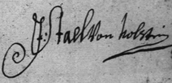 STAHLARNA VAR NU MEDBORGARE I DEN SVENSKA PROVINSEN LIVLAND - Nu var släkten Stahl medborgare i den svenska provinsen Livland. Med andra ord kommer vi den 16 september 2029 ha bott i Sverige i 400 år. Nu kan man följa släkten Staël von Holsteins historia genom svenska arméns rullor som finns i det Svenska Riksarkivet i Stockholm.